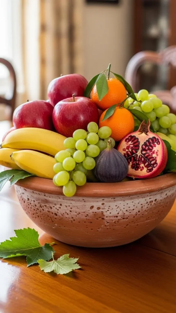 A terracotta fruit bowl adds natural tones to winter tables. Fill it with apples, pears, or citrus for subtle color. Place it on a linen runner for stability. For a budget option, use a painted ceramic bowl in a terracotta shade. This centerpiece works well in kitchens and dining areas.